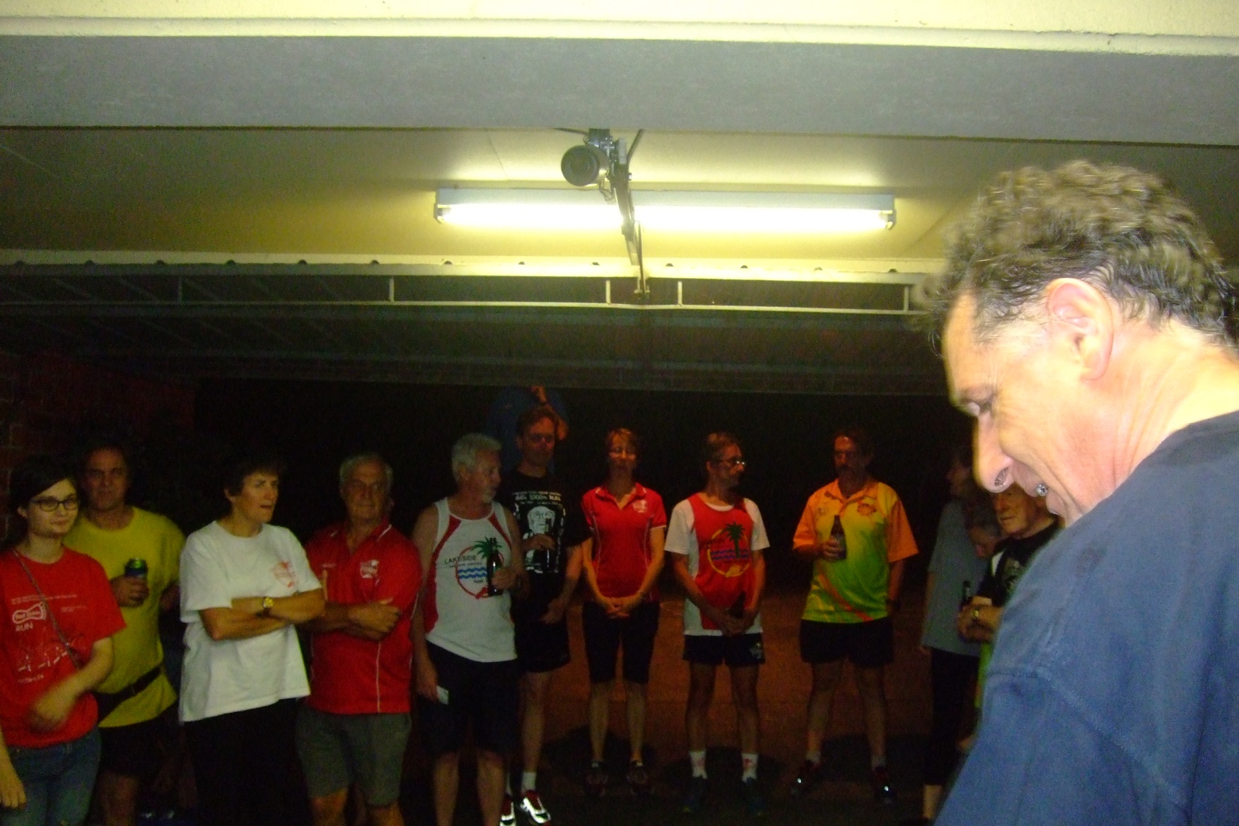 As we have come to expect, a large pack gathered at the Unit in anticipation of a good run and of course, good food. The hare gave a long dissertation about the run, trail marks etc, including lack of trail for the walkers when they separate. He emphasized the possibility of 360 degree checks and assured us there were plenty of arrows.